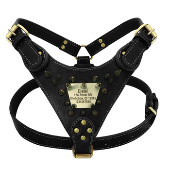 맞춤형 가죽 개 하네스 날카로운 스파이크 박힌 개 하네스 맞춤 Id 태그 하네스 애완 동물 조끼 핏불 복서 Mastiff